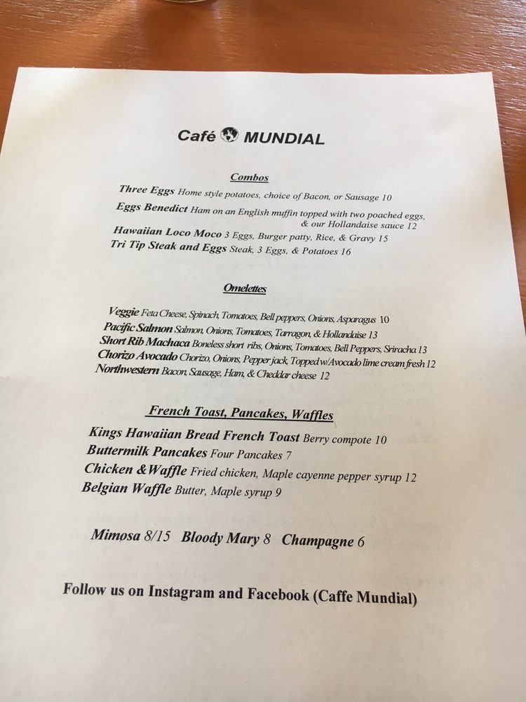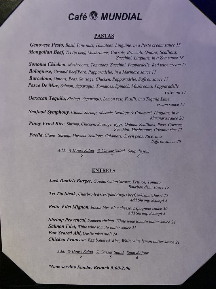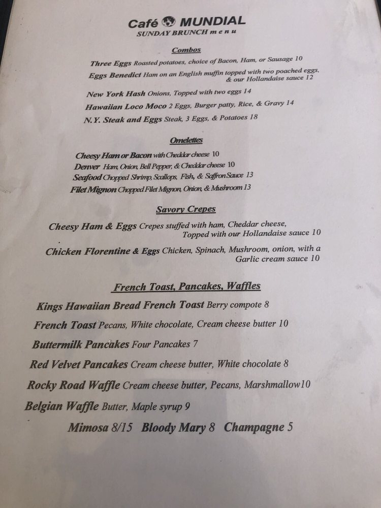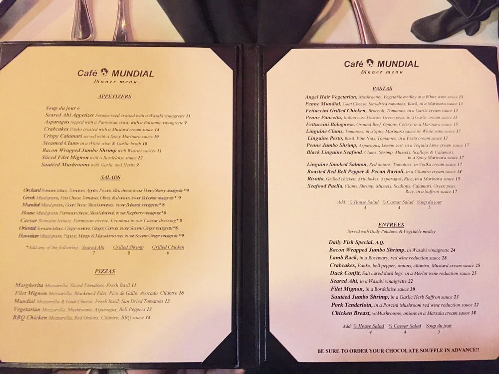 Cafe Mundial Menu