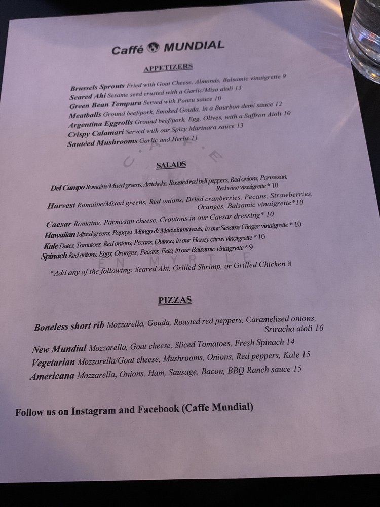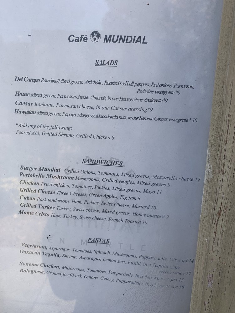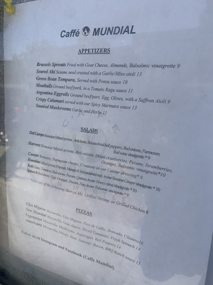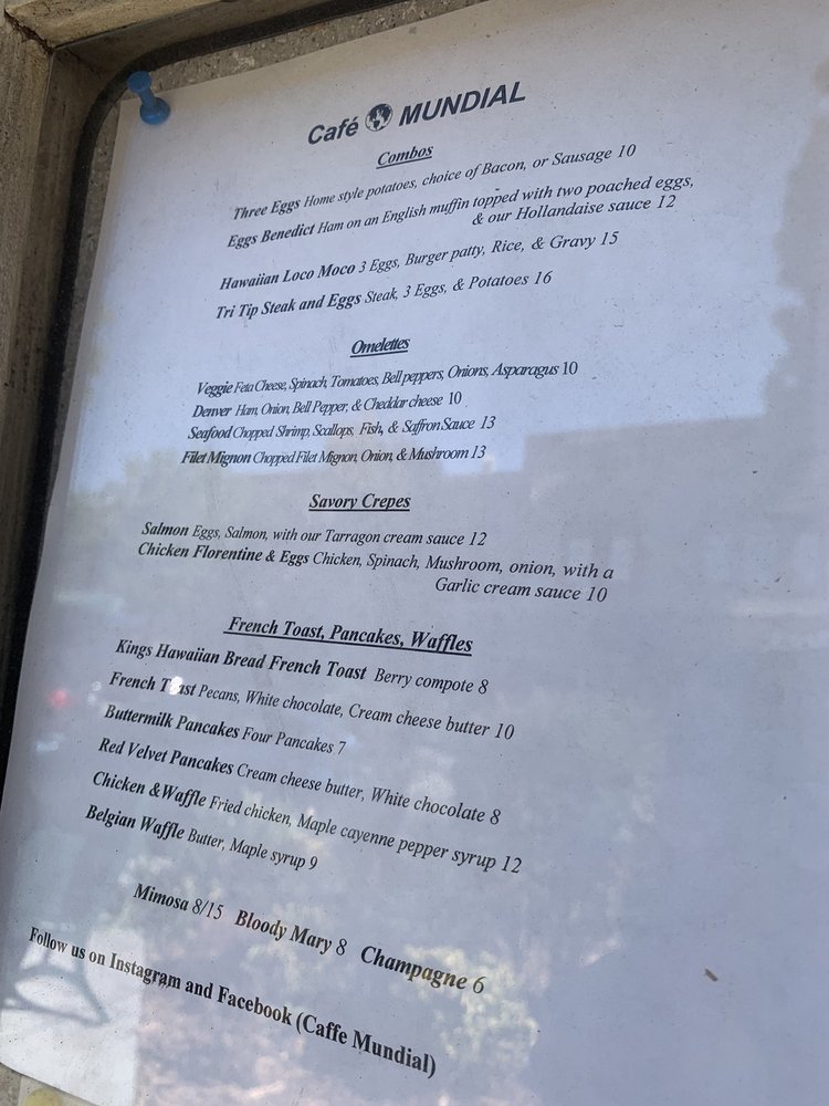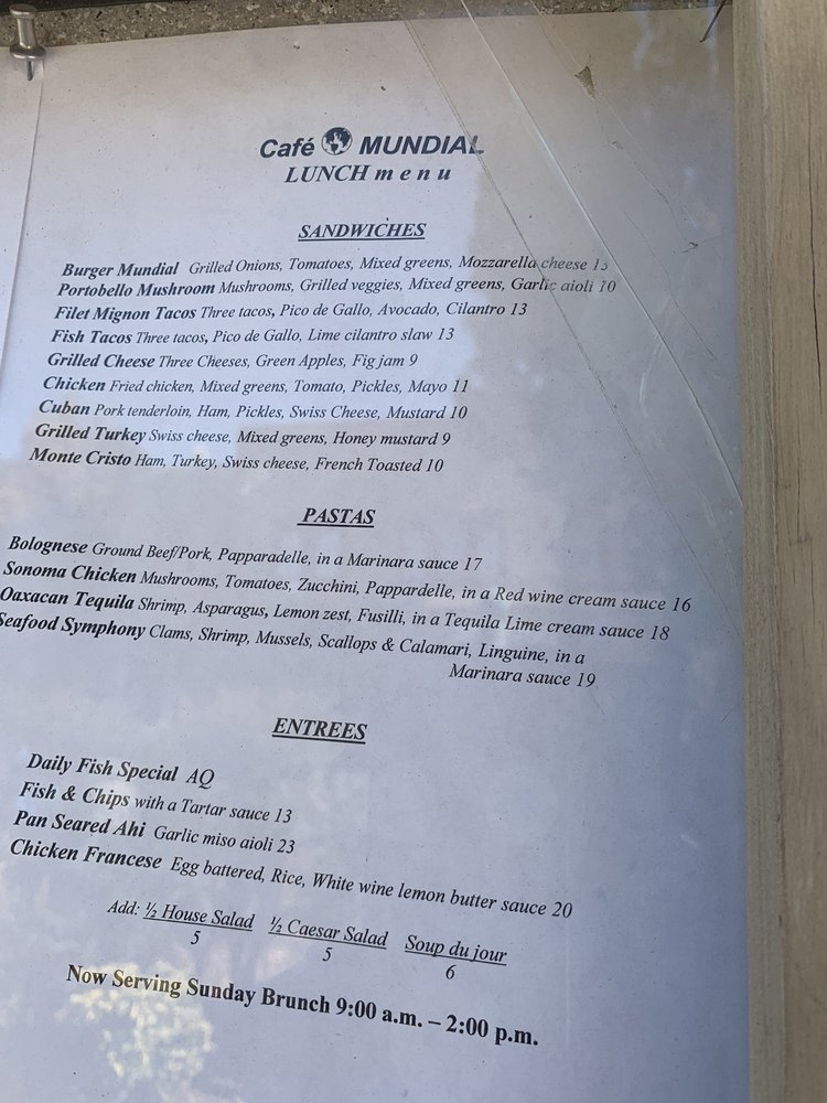 Cafe Mundial Menu